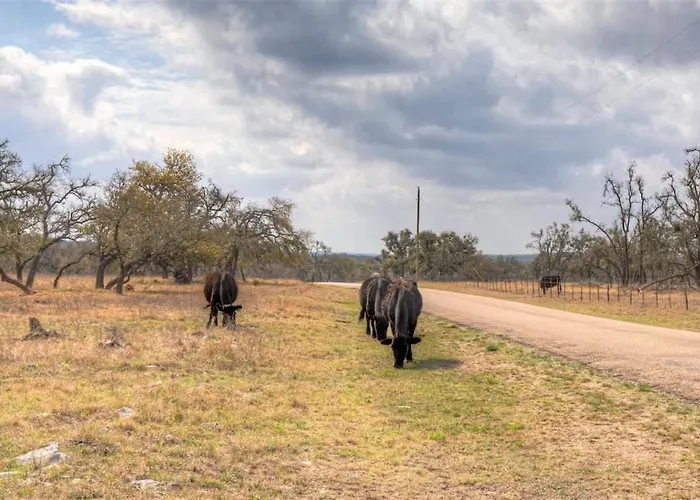 A Hill Country-Fire Pit & Hot Tub! Vila tem cozinha equipada com refrigerador, fogão e utensílios de cozinha. O aeroporto mais próximo é em San Antonio Internacional, a 140 km de distância desta casa de férias.